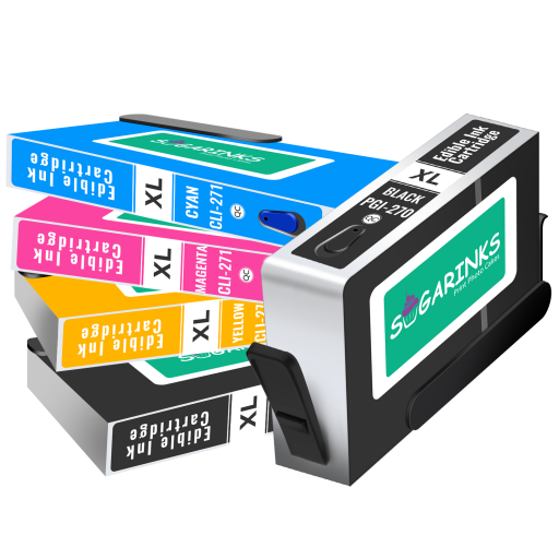 - Sugarinks PGI 270 Edible ink cartridge is filled with premium quality edible ink specifically designed for Canon printers. Our brand edible inks are FDA compliant and kosher. The edible ink colors are matched with regular Canon inks, and then modified to hold their coloring better on our edible paper. Sugarinks brand edible cartridges are most reliable, cost effective XL size, ready to use edible cartridge for your edible printer to produce vibrant and vibrant prints to use with cake and bakery food products.